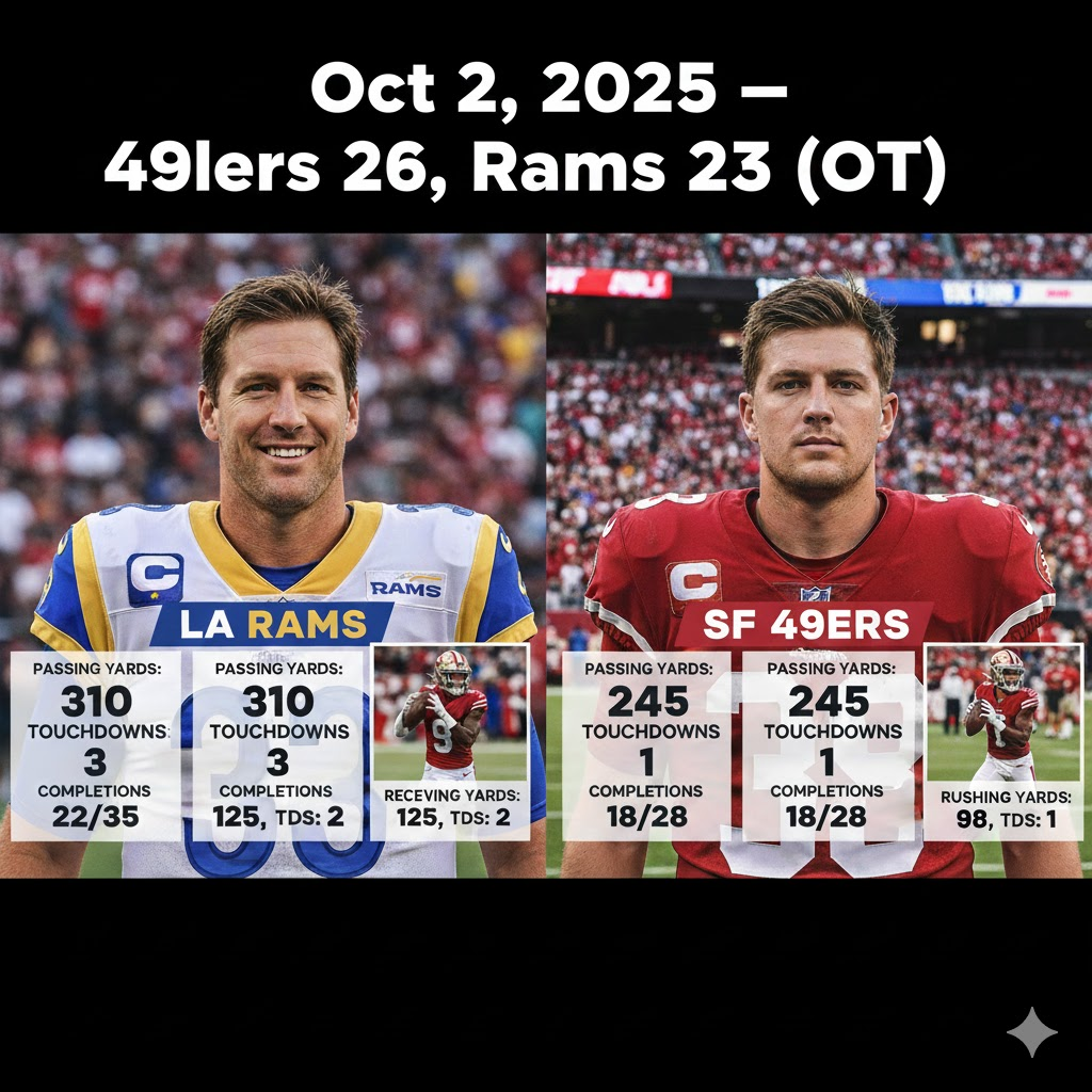 Oct 2, 2025 — 49ers 26, Rams 23 (OT)